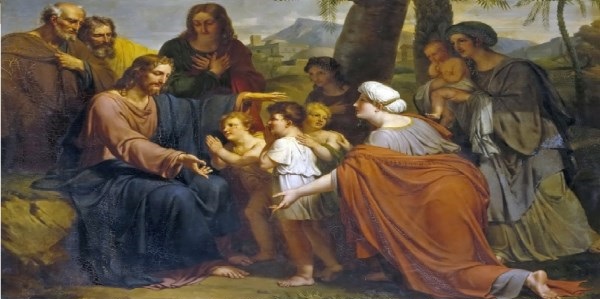 Márk 10.13. Ekkor gyermekeket hozának hozzá, hogy illesse meg őket; a tanítványok pedig feddik vala azokat, a kik hozák.  14. Jézus pedig ezt látván, haragra gerjede és monda nékik: Engedjétek hozzám jőni a gyermekeket és ne tiltsátok el őket; mert ilyeneké az Istennek országa. 15. Bizony mondom néktek: A ki nem úgy fogadja az Isten országát, mint gyermek, semmiképen sem megy be abba.