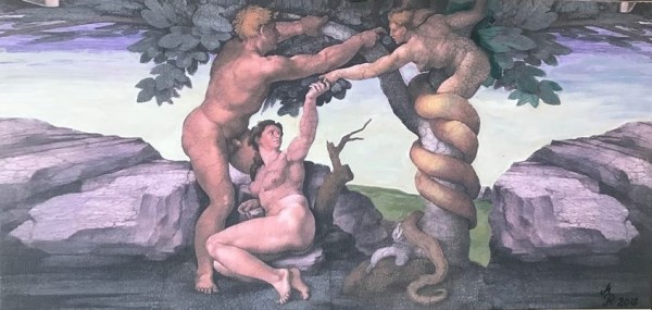 1 Mózes 3. 1. A kígyó pedig ravaszabb vala minden mezei vadnál, 2. És monda az asszony a kígyónak: A kert fáinak gyümölcséből ehetünk; 3. De annak a fának gyümölcséből, mely a kertnek közepette van, azt mondá Isten: abból ne egyetek, azt meg se illessétek, hogy meg ne haljatok. 4. És monda a kígyó az asszonynak: Bizony nem haltok meg;