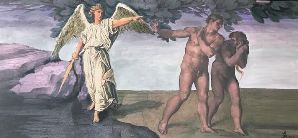 1 Mózes 3. 8. És meghallák az Úr Isten szavát, a ki hűvös alkonyatkor a kertben jár vala; és elrejtőzék az ember és az ő felesége az Úr Isten elől a kert fái között. 9. Szólítá ugyanis az Úr Isten az embert és monda néki: Hol vagy?10. És monda: Szavadat hallám a kertben, és megfélemlém, mivelhogy mezítelen vagyok, és elrejtezém.