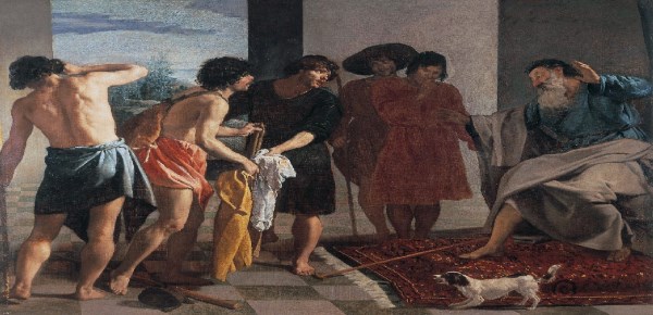 1 Mózes 37.29. És visszatére Rúben a kúthoz, és ímé József nem vala a kútban,31. Akkor vevék a József felső ruháját, és leölének egy kecskebakot, és belemárták a felső ruhát a vérbe. 32. És elküldék a czifra ruhát, és elvivék atyjokhoz és mondának: Ezt találtuk, ismerd meg, fiad ruhája-é vagy nem? 33. És megismeré azt, és monda: Fiam felső ruhája ez, fenevad ette meg őt, bizony széllyelszaggatta Józsefet.