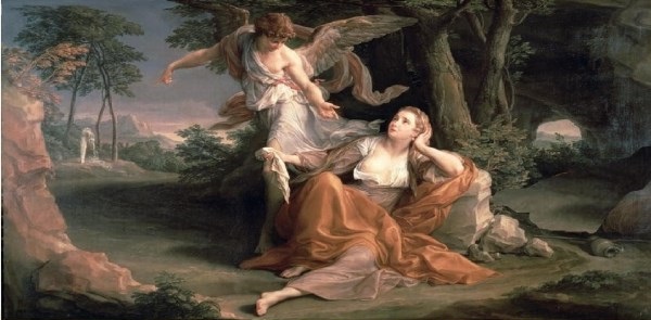 17. Meghallá pedig Isten a gyermeknek szavát, és kiálta az Isten angyala az égből Hágárnak, és monda néki: 18. Kelj fel, vedd fel a gyermeket, és viseld gondját, mert nagy néppé teszem őt. 21. Lakozék pedig Párán pusztájában, és vőn néki anyja feleséget Égyiptom földéről.