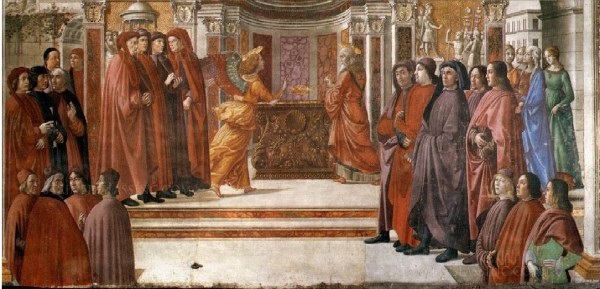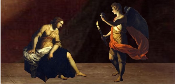Lukács 1.5. Heródesnek, a Júdea királyának idejében vala egy Zakariás nevű pap az Abia rendjéből; az ő felesége pedig az Áron leányai közül való vala, és annak neve Erzsébet. 7. És nem volt nékik gyermekük, mert Erzsébet meddő vala, és mind a ketten immár idős emberek valának. 11. Néki pedig megjelenék az Úrnak angyala, állván a füstölő oltár jobbja felől. 12. És láttára megrettene Zakariás, és félelem szállá meg őt.